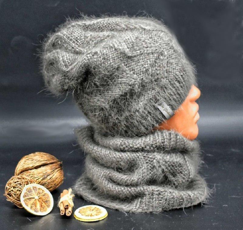 Предлагаю красивый комплект из пуха норки - вязаную шапочку и бафф красивого серого цвета. Также свяжу вам женскую шапочку или комплект ручной работы на заказ - необходимого цвета, размера и состава пряжи. Вязаный комплект из теплой мягкой пряжи Пух норки, шапка легкая, теплая, удобная, оригинальная - то, что нужно в холодный сезон. Размер универсален Материал: шерстяная пряжа пух норки Женская модная шапочка со жгутами связана спицами вручную. Вы можете купить готовую вязаную шапочку или заказать осеннюю вязаную шапку другого цвета или модели, могу связать для вас шапку по фото из интернета.
