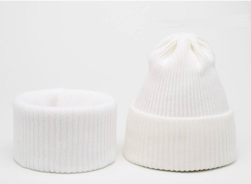 Детский демисезонный комплект шапка и бафф, детский осенний набор шапка и снуд, молочный