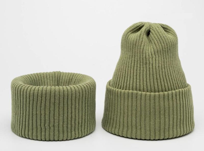 Детский демисезонный комплект шапка и бафф, детский осенний набор шапка и снуд, хаки