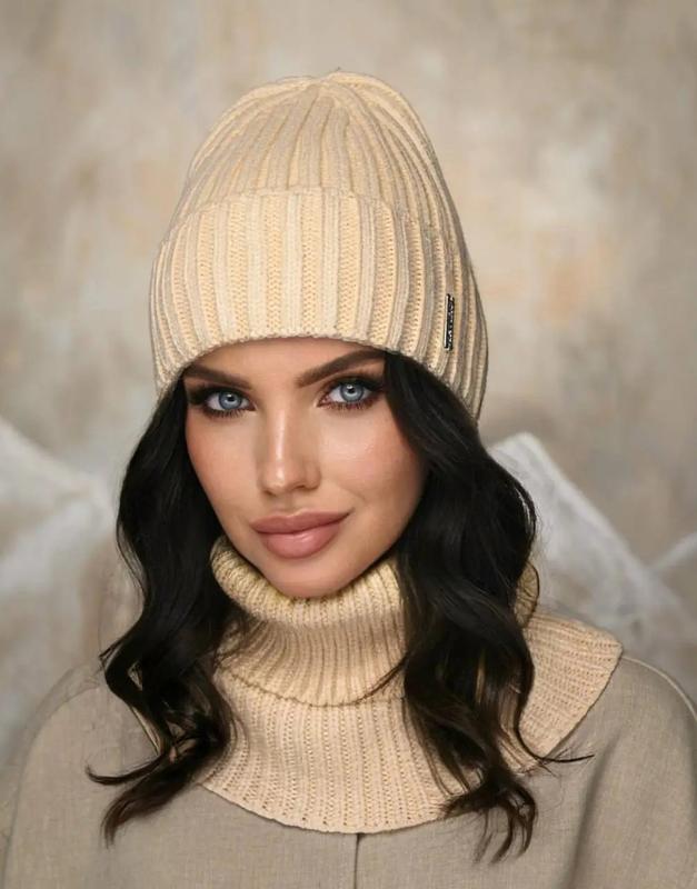 Шапочка-біні жіноча з відворотом, снуд комплект