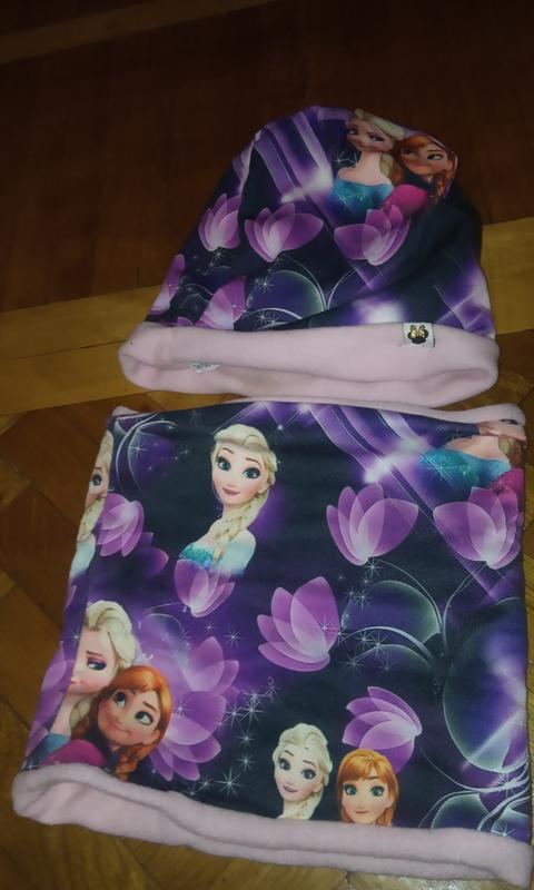 В идеальном состоянии, на 6-8 лет. Полностью флисовая шапка и снудик. Есть разной качественной одежды могу сложить пакетом
