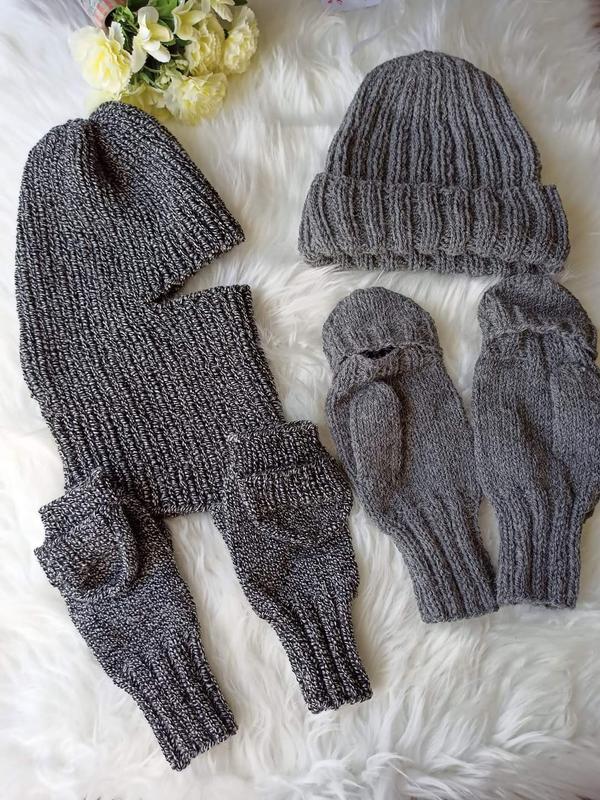 Балаклава вязаная трендовая шапка перчатки шапка 2в 1 шлем митенки