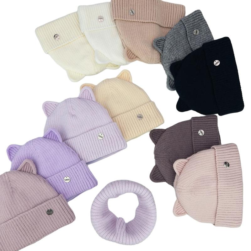 Теплый зимний комплект для девочек с ушками котика. Комплект включает в себя шапку и хомут, хомут можно также использовать в качестве повязки на голову в более теплое время года. Шапка утеплена флисом по всей плоскости изнутри, с отворотом, отворот закреплен. Шапка декорирована металлической нашивкой talvi Хомут плотный двухслойный. Состав: основа - 50% акрил, 28% ПБТ, 22% нейлон, подклад - 100% полиэстер (флис) На холодную осень-зиму. размер 46-48 гг 50-52 гг цена шапка 335 комплект 440