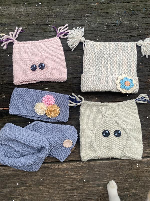 Детские шапочки ручной работы. Шапка «Сова»- 120 грн. Шапка с цветком- 220грн Повязка на голову плюс снуд -350 грн. Пересылаю любым перевозчиком.