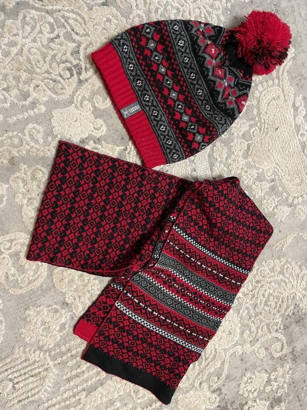 Зимний мужской комплект: шапка + шарф. мужская новогодняя шапка и шарф