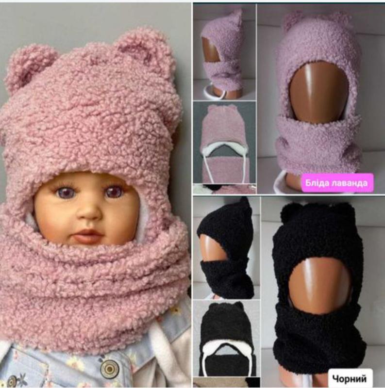 Детская шапка тедди с хомутом подойдет ребенку от 2 до 5 лет 50 размер (как определить размер смотрите на фото в галерее). Обхват шапочки- 48 см Глубина: впереди- 18 см, сзади- 20 см Комплект выполнен в трендовом цвете: черный, бледная лаванда. Унисекс Сезон: Зима Ткань: мех Тедди на трикотажной основе (Не тянется) Подкладка: флис Утеплитель: силиконизированный синтепон Скоро холода, поспешите утеплить своих деток удобными, комфортными комплектами по приятным ценам!)