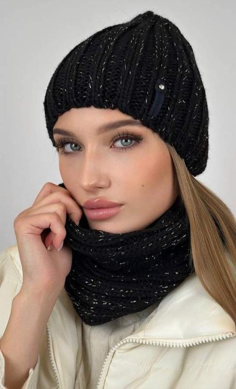 Женский комплект шапка колпак на флисе и хомут/снуд с люрексом.