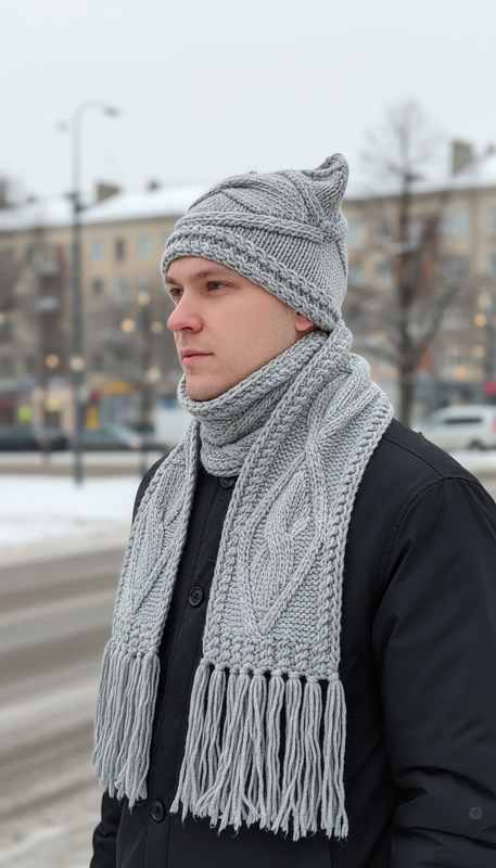 Шапка з вушками та шарф 180×20 см — чоловічий набір від prigriz, теплий, м’який, ручна роб...