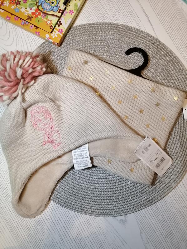 Комплект зимний Kiabi Frozen Шапка +хомут на меховой подкладочке, очень тёплые 🤗 💰 Цена 160 грн 🔥 📌 Размер 2/3 года (46-48см), идеально до 2 лет, маломерит 🧵 Замеры : шапка - высота 16см спереди, 18 см сзади, полуобхват 24 см. Хомут - ширина 19 см, полуобхват 24 см
