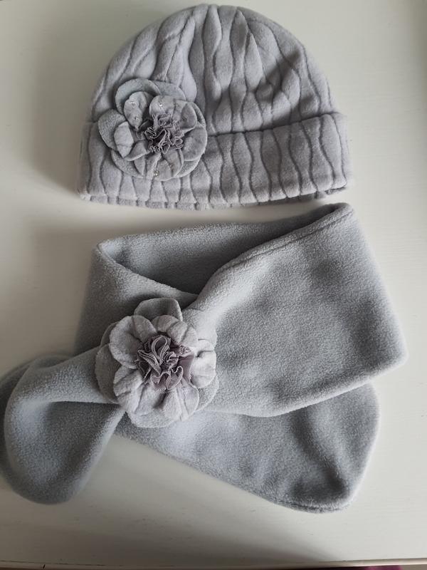 шикарный дорогой качественный флисовый комплект. тёплый, очень мягкий и приятный к телу. производство Польша шапочка на трикотажной подкладке диаметр 46, тянется, высота 18 шарф длина 93, ширина 14
