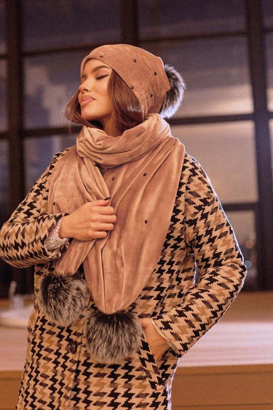 Мягкий комфортный комплект из шапки и шарфа. Плюшевый велюр с отделкой из страз. Шарф и шапка украшены меховыми помпонами. Размер единый универсальный. Ткань: плюшевый велюр. Цвет: кофе. Есть кофе, серый, терракотовый, розовый Высота изделия: UN=67 см Ширина изделия: UN=176 см Глубина изделия: UN=23 см Окружность: UN=54 см Заказы принимаю только в переписке, не оформляйте заказ на сайте! Условия заказа на моей странице, в разделе "Обо мне". Отправка ПН-ПТ в течение 1-3 дня после оплаты или предоплаты. Всегда на связи и готова ответить на ваши вопросы!