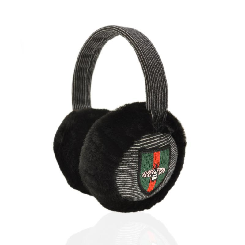 Наушники меховые с нашивкой "пчела" и тканевым ободком черные, унисекс