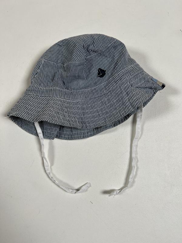Синяя панамка в полоску для мальчика с завязками панама коттон 50-51см