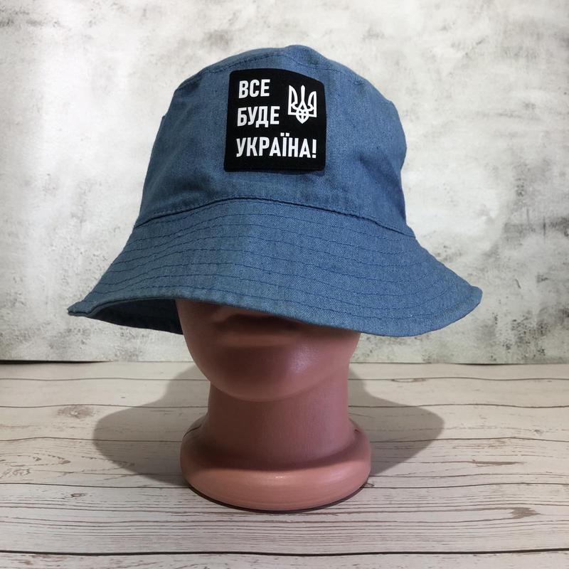 Летняя тоненькая панама Все будет Украина. Рисунок нашивка. Размер: 📌54 см. Цвет: джинс.