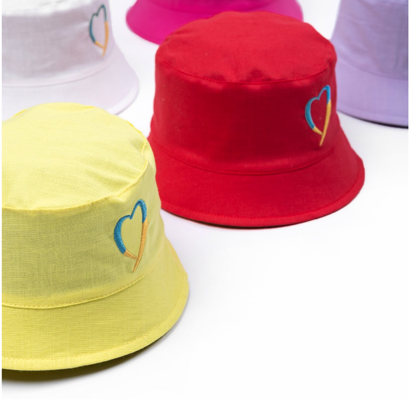 Панама для девочки льна, с вышивкой голубо-желтое сердечко. Размер 52 Цвет: красный Склад 85% Бавовна, 15% льон