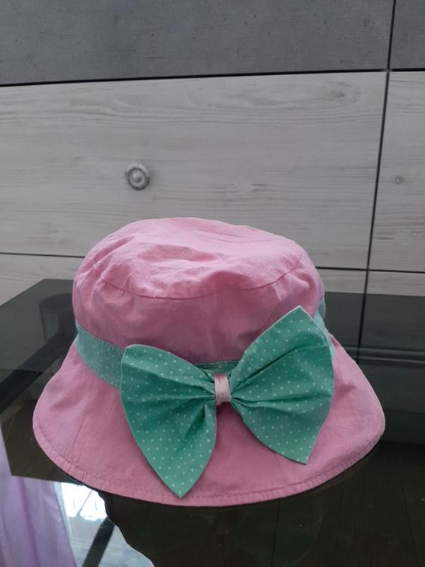 Розового цвета панамы, одна с зеленым бантом, другая с цветочным принтом.