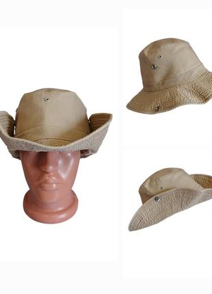 Продам хлопковую шляпу-трансформер Материал: 100% хлопок Цвет: бежевый Размер: идеально сидит на объём головы 56 см, возможно до 57 см (но не больше), также подойдет для меньшего объёма. Состояние: хорошее, но отсутствует шнурок, который завязывался под подбородком. Окружность внутри по ленте 60 см Особенности: ✔ Лёгкая, удобная и дышащая благодаря металлическим люверсам ✔ Гибкие поля с кнопками позволяют менять форму шляпы (классическая, ковбойская, загнутые края) ✔ Отличный вариант для рыбалки, охоты, походов, отдыха на природе или пляжа 📍 Возможен самовывоз или отправка. 💬 Пишите в личные сообщения для деталей!