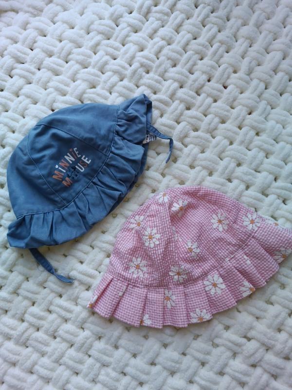 Детские панамки на 12-18 месяцев, но можно и раньше, подойдут к 46 см. Замеры на фото. Цена за обе