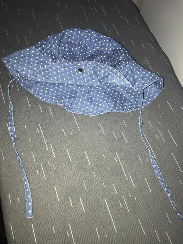 Панама для девочки на завязках. Спереди регулируется подъем полей панамы застежкой-кнопки. Объем 49 см.