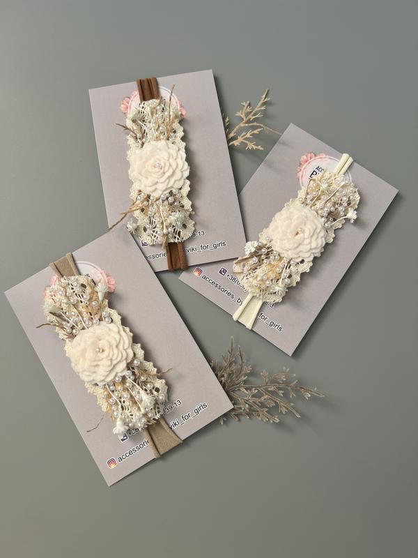Молочная повязочка с цветочкой и бусинками. Цвет резиночки по выбору. Цена указана за одну повязочку.
