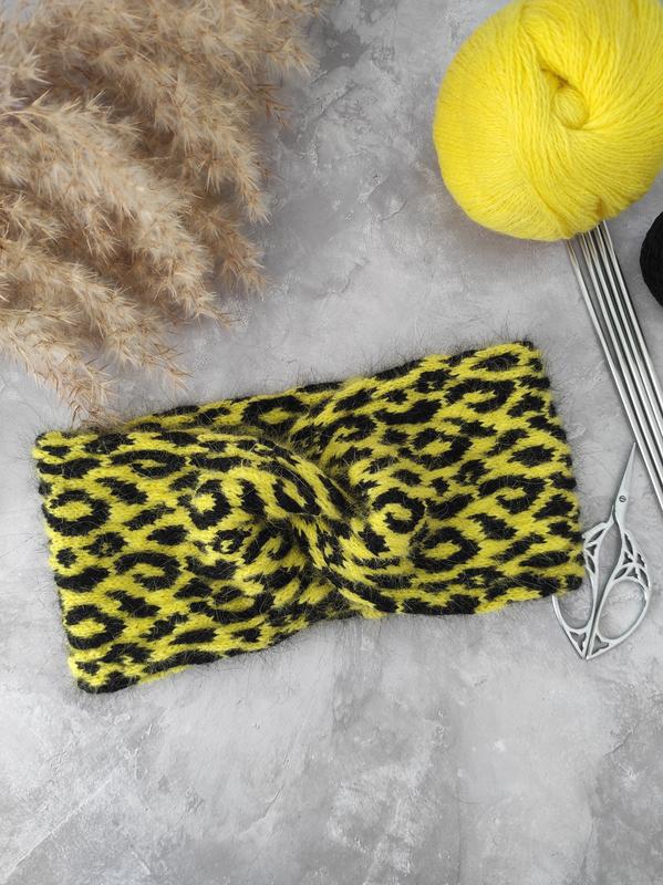 Повязка на голову связана полностью собственноручно с леопардовым принтом в технике Жаккард. Очень теплая из ангоровой шерсти, и мягкая на ощупь