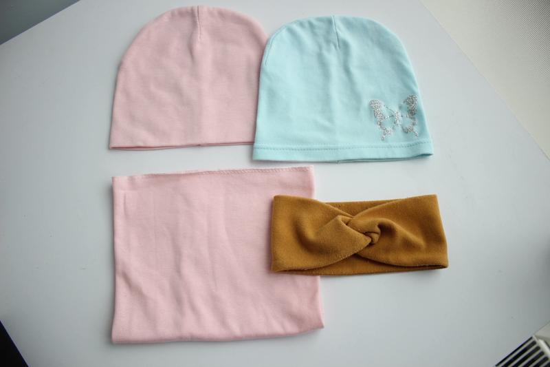Набір тоненьких осінніх шапочок на дівчинку 1.5-2 року, повʼязка на голову
