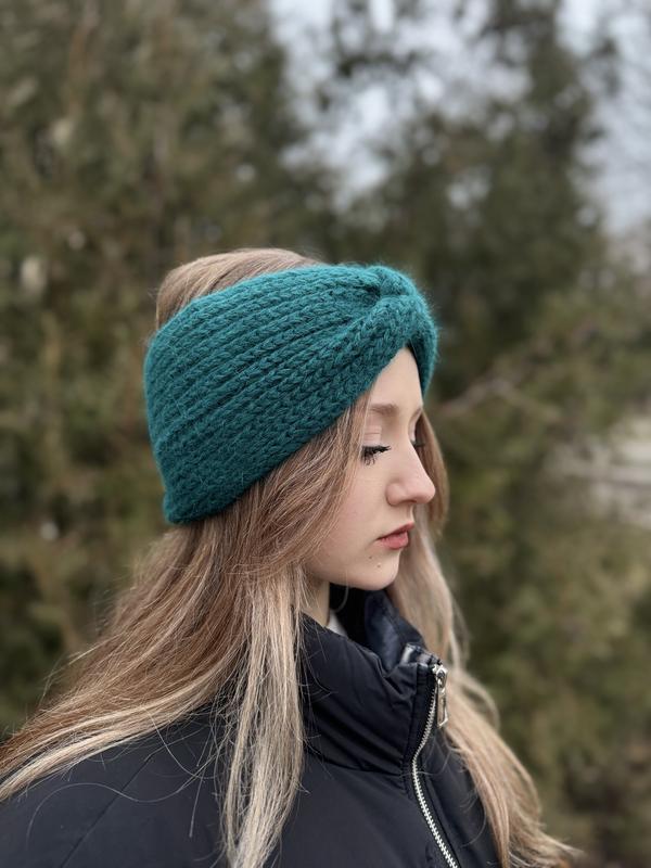 Теплая ангоровая повязка чалма. Стильная широкая вязаная повязка-чалма, ручная работа. Пушистая повязка связана с премиальной ангоры с пухом кролика. Очень мягкая, не колючая, пушистая и теплая. Модный, стильный аксессуар. Отлично носить с хвостом. Подходит под любой стиль одежды от спорта к классике. В НАЯВНОСТІ цвет изумрудно-зеленый, размер 54-56 Ангорова пряжа Пух Норки/Норка Преміум - 50% пух кролика, 50% нейлон.