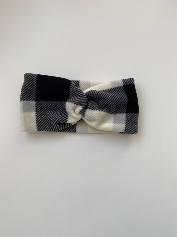 Повязка новая на голову флисовая черная с белым чалма в клетку