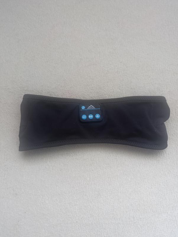 Повязка на голову с беспроводными наушниками, работает отлично заряжается по USB, заряд держит хорошо.