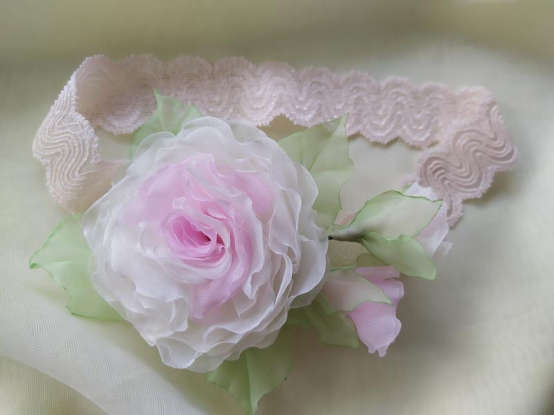 Повязочки носят с рождения)) Нежнейшая повязочка на голову для маленькой принцессы с розой. Роза с двумя бутонами выполнена из шифона. Бутоны можно поворачивать в нужную сторону. Все листики и лепесточки выполнены только вручную. Повязочка из пудрового кружева стрейч. Возможно изготовление на любой размер головы а также в другом цвете:) Цветок к повязочке не клею, а пришиваю, так чтоб не было контакта нежной детской кожи с клеем.)) Возможно изготовление в другом цвете, а также ввиде резинки, заколки, на обруче. Смотрите другие мои объявления много красивого для маленьких принцесс и их мам;)