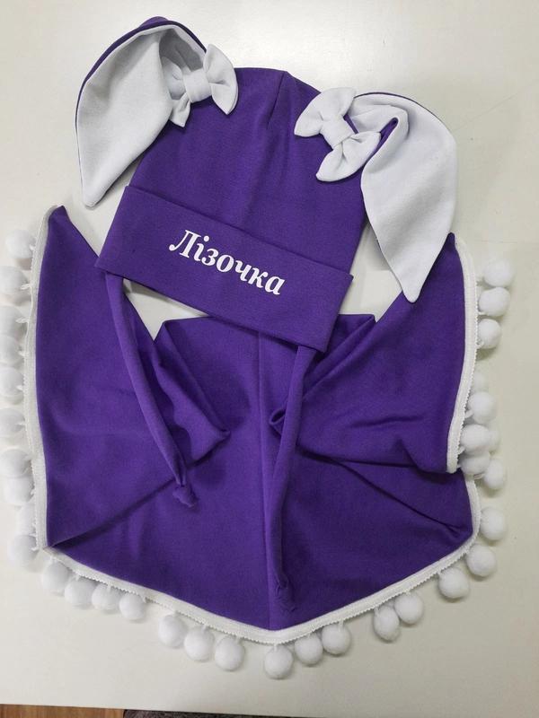Ціна 420грн. Якщо добавити ім'я +20 грн. Стильний комплектик: шапка, хомут-косинка на кнопках. Матеріал стрейч-кулір, тканина тягнеться. Якість супер. УВАГА!!!! Виготовим під заказ будь-який колір та дизайн.