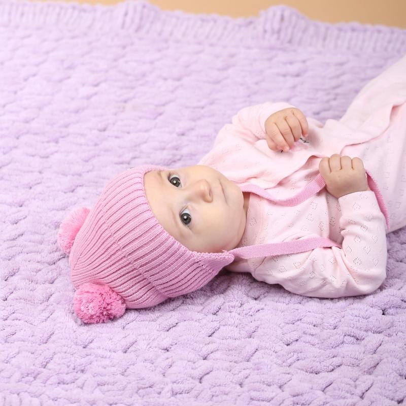 Дитяча шапочка на зав'язках з бубонами, осіння шапочка з вушками, тепла шапка для дитини