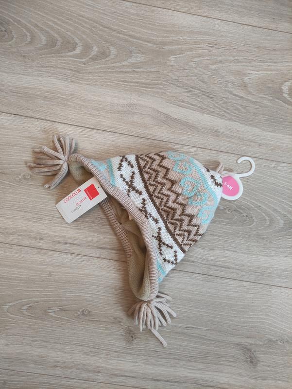 Шапка вушанка на дівчинку. Бирка 3-6 місяців. На флісі.