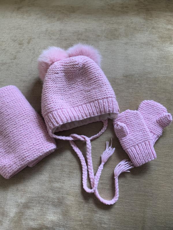 Шапочка на девочку с натуральным бубонами, ручная работа