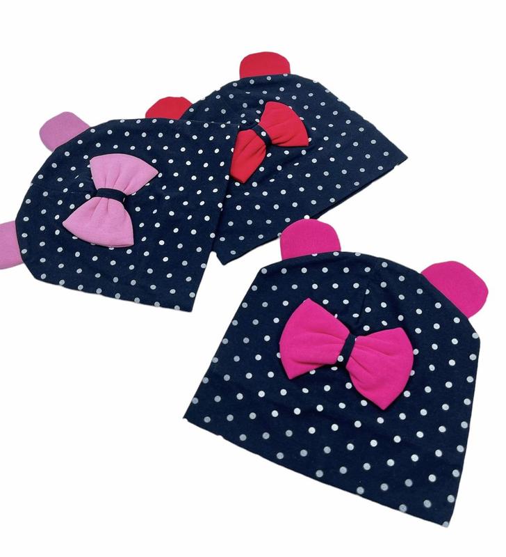 Шапка для девочки 6-12 месяцев в горошек с ушками 46/48