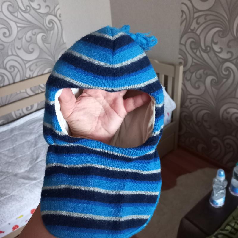 Шлем теплий.На вік від 2 до 3 років. зверху все ок, а всередині -ну такий ,видно що ношений.