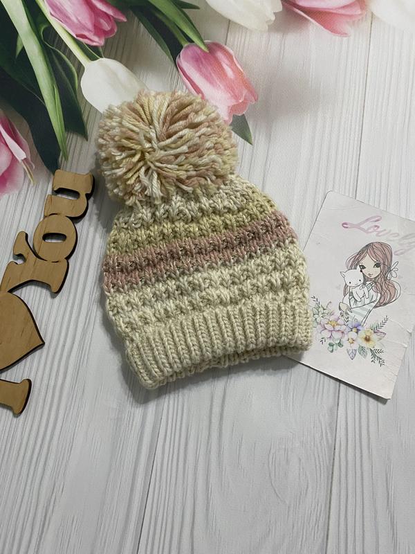 Гарнесенька шапочка на від George. 🍀0-6 міс. Добре тягнеться. Ю Всередині - бавовняна підкладка. Шикарний помпон!