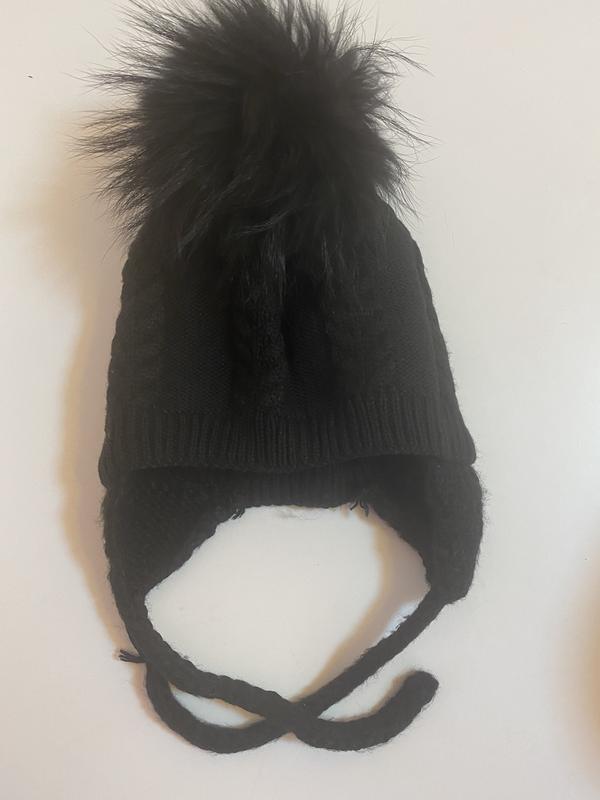 Шапка чорна косичка розмір 48/50 пампон натуральне хутро, подвійна