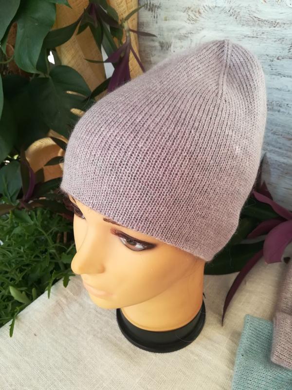 Шапка зимняя бини двойная теплая двухцветная Двойная, двухцветная. Можно носить обе стороны под настроения. Сочетание двух цветов: тауп (пыльная сирень) и светлая лаванда. Теплая не раздражает кожу. Размер 55-57. (на заказ можно сделать больший размер) Высота шапочки 24 см. Состав: мохер премиум класса, кардный меринос. Рекомендуется стирка при 30 градусах в ручном режиме.