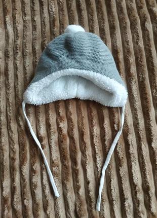 Дуже тепла шапка на малюка 3-6 міс, обхват голови 40-44. Носили дуже мало. Стан ідеальний.