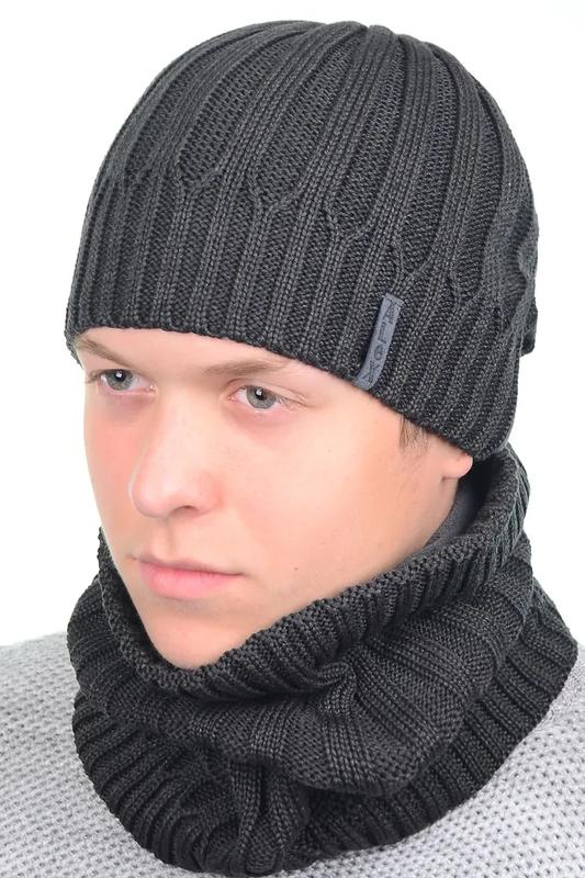 Молодежный комплект снуд и шапка-AL19314K темно-серый Стильный молодежный комплект, который состоит из шапки и хомута-трубы, выполнены из качественной пряжи,которая придает набору оригинальности. Однотонный мужской комплект состоит из стильной шапки и шарфа-хомута.Шапку и шарф этого комплекта можно носить с любой демисезонной и зимней одеждой. Разнообразие расцветок позволит выбрать более подходящее изделие вам под стиль.Комплект выполнен из качественной пряжи с подкладкой из флиса. Классический стиль и минимальное количество деталей придают изделиям особую элегантность. Размер хомута ширина 27 см, высота 25 см. - Состав хлопок 50%, шерсть 30%, акрил 20% - Размер 56-58 - Новинка сезона Осень-Зима - Страна производитель Украина Такой теплый мужской комплект идеально подойдет для повседневного образа. Подкладка из флиса хорошо удерживает тепло и защищает от ветра, а хомут-труба позволит защитить шею от холода и чувствовать себя уютно и комфортно в непогоду.