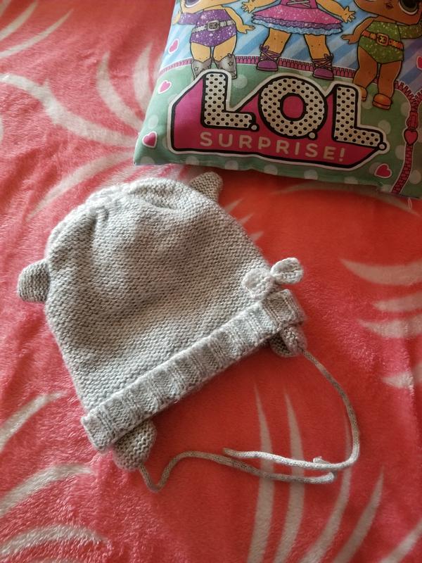 Тепленька сіра із ниткою люрекс шапка шапочка на дівчинку 1-2роки