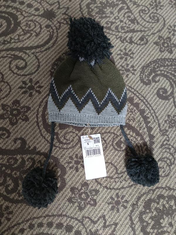 шапка теплої в'язки. на холодну осінь. помпони можна відрізати. шапка тягнеться до 22 см.