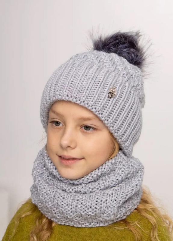 Комплект (шапка, снуд) девочке 5-15 лет на зиму 52/55 см