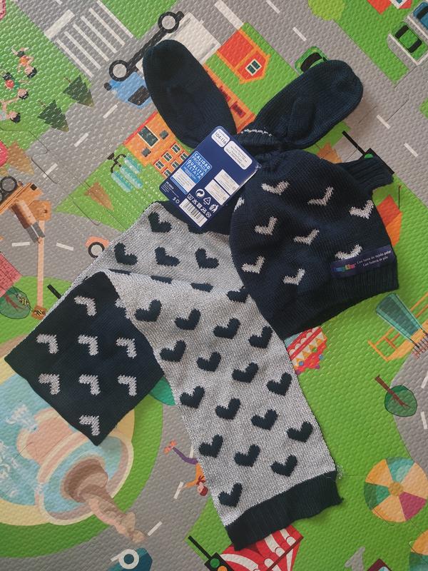 набір Lupily шапкатна флісі, шарф та варежки темно-синий колір з люрексом. р.104-116см ціна 190грн.