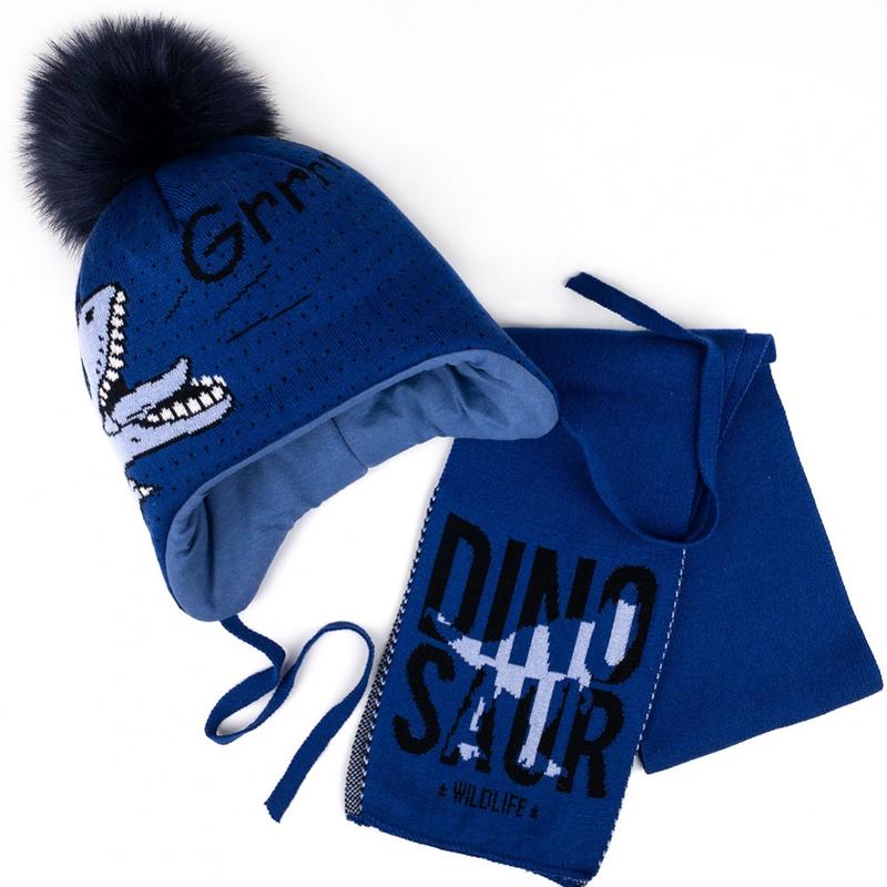 Комплект (шапка, шарф) для мальчика зима с принтом динозавр