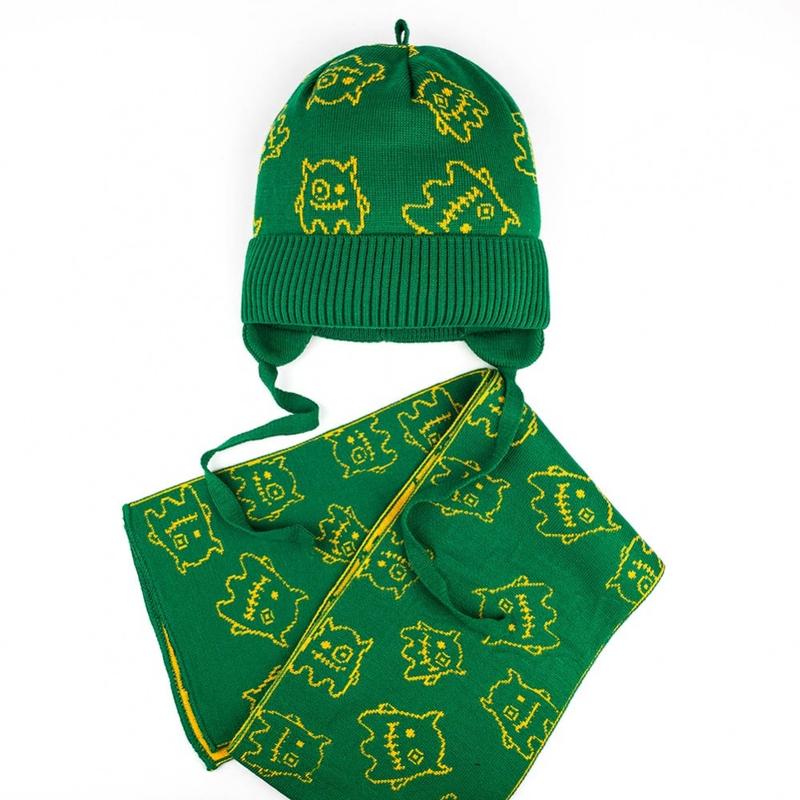 Шапка и шарф мальчикам на зиму принт монстрики 48 см