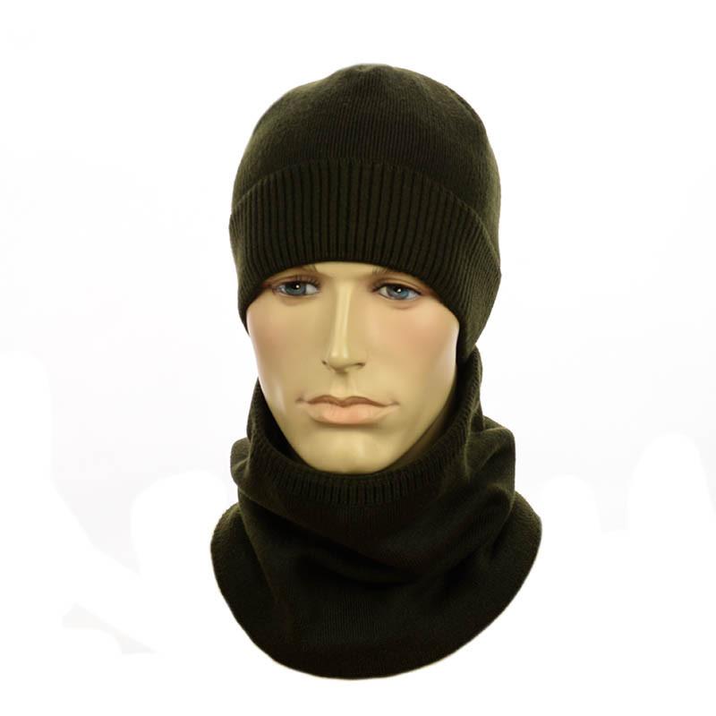 Теплый зимний мужской набор - вязанные шапка с отворотом и снуд на флисе