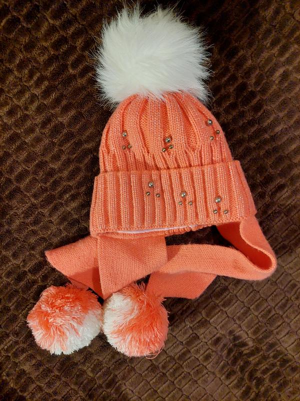 Шапка для дівчинки, на ріст 146. Стан ідеальний , після 1 єї дитини. Шапка без дефектів. Середина фліс. Китиці з ниток знизу, зверху зі штучного хутра.