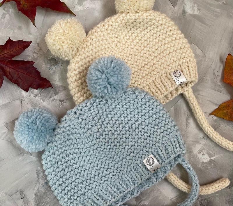 Деми шапочки для малышей, размер 0-3 месяцев, выполнены из мериносовой ниточки